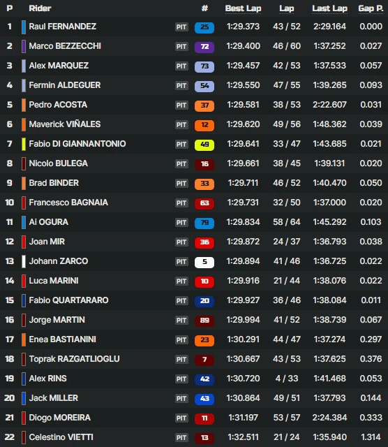 Una tarde intensa: Raúl Fernández y Bezzecchi libran el duelo del día